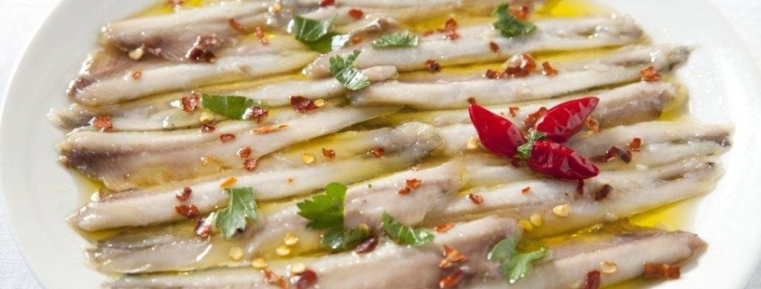 Inčuni v česnovi in čili marinadi