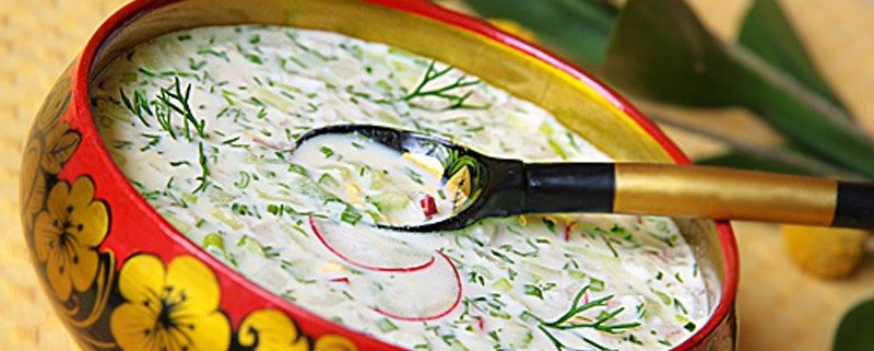 Olupite krompir, korenje in repo. Narežite zelenjavo na paličice ter jo skuhajte na pari v nekaj minutah. Narežite kumaro na majhne kockice, mlado čebulo (tako beli kot zeleni del) in redkvice na kolutke. Nasekljate koper (uporabite lahko tudi zmrznjenega). Nasekljajte trdo kuhani jajci. Vse stavine zmešajte s smetano in kefirjem ali ¾ litra jogurta (zmešanega z mineralno vodo). To hladno juho na koncu začinite s sladkorjem in gorčico. Postrezite z rženim ali črnim kruhom.
